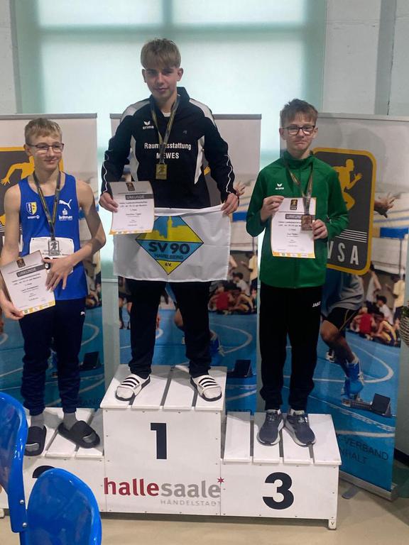 Matti Schulze (M 15) für sein 5-Kampf Ergebnis von 2.499 Punkten, erzielt am 12. Januar bei den Hallenlandesmeisterschaften in Magdeburg.