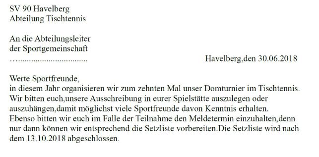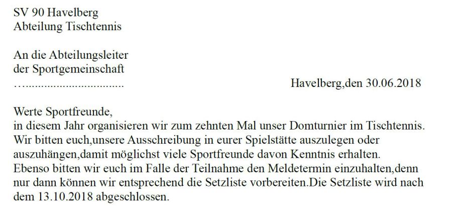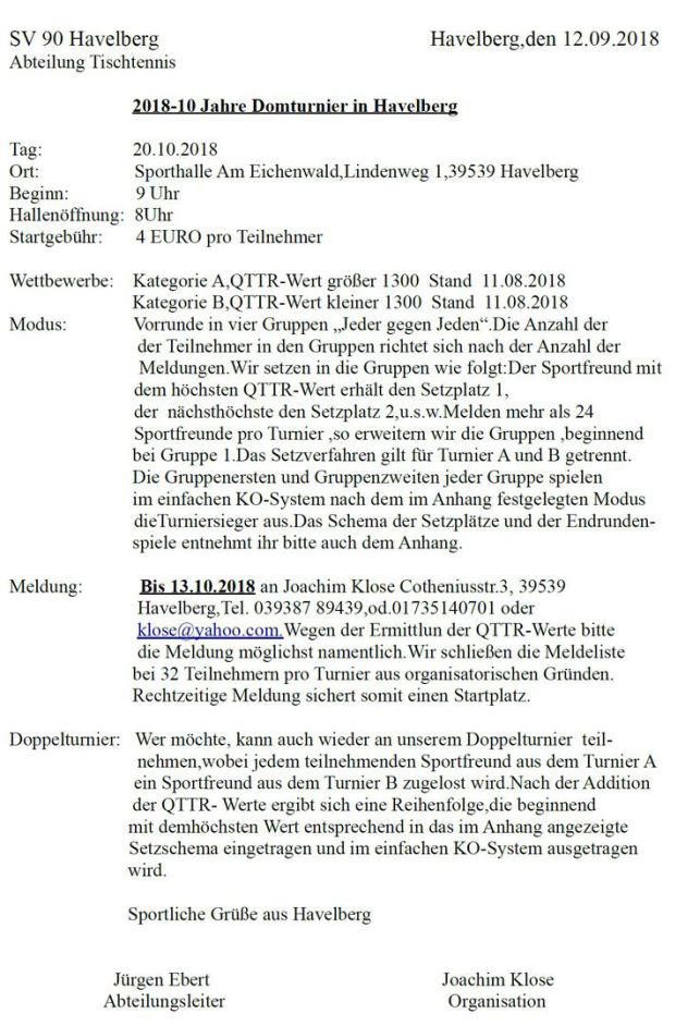 10 Jahre Tischtennis - Domturnier in Havelberg